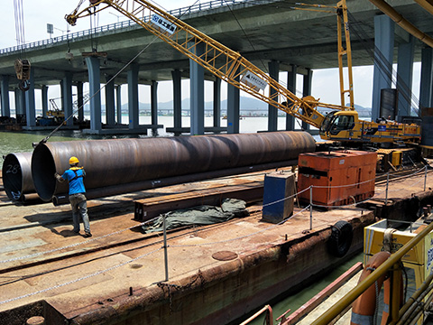 公司擁有專業的施工隊伍,5臺15米、12米日立450機械打樁機,3000根日產拉森鋼板樁。同時還具備豐富的棧橋施工經驗。